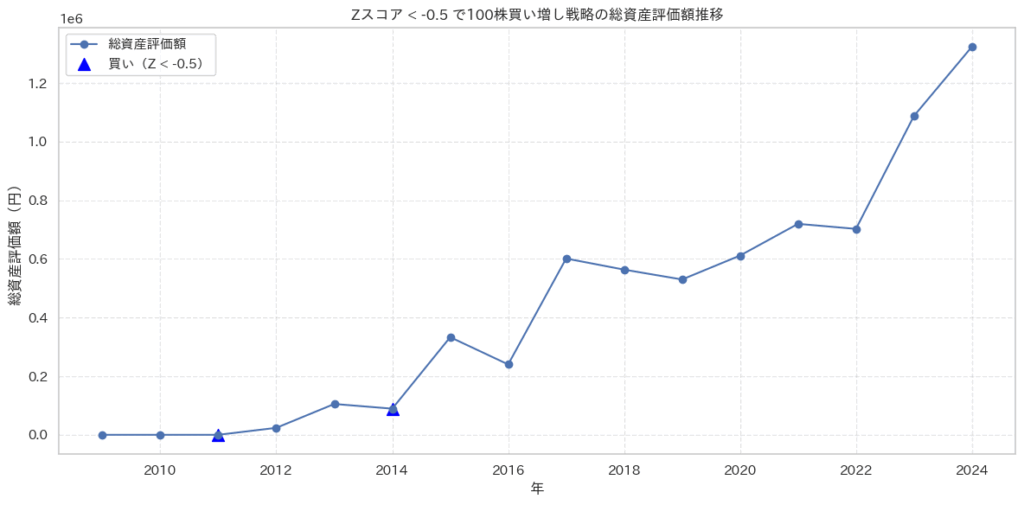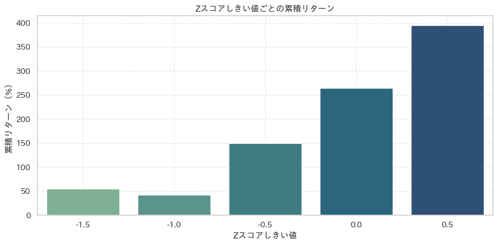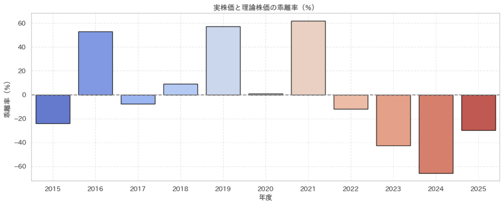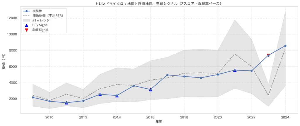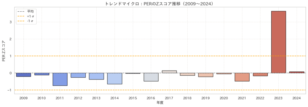 たとえば2023年はPERが96倍と極端に高く、Zスコアも大きくプラス。