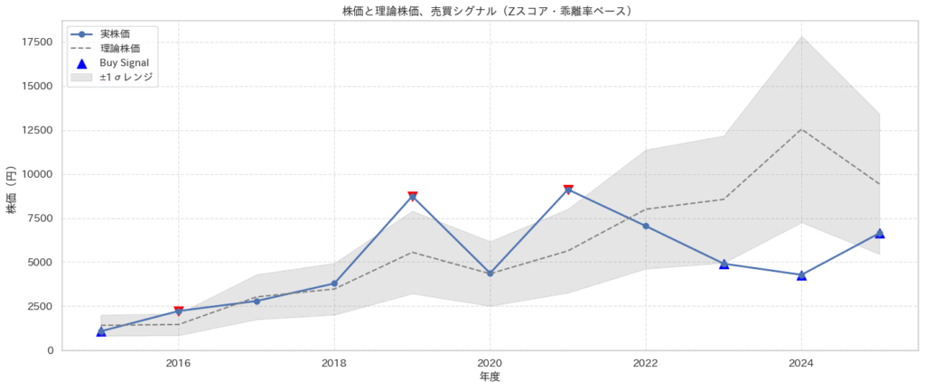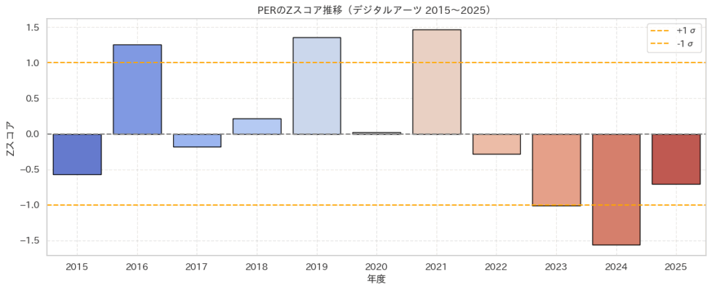 → 平均より1標準偏差以上高い → 割高な水準(市場が強気・期待先行)
