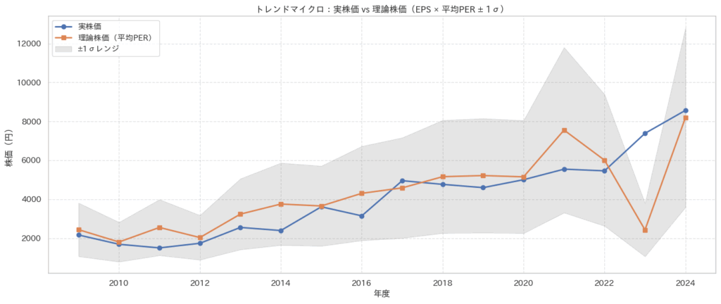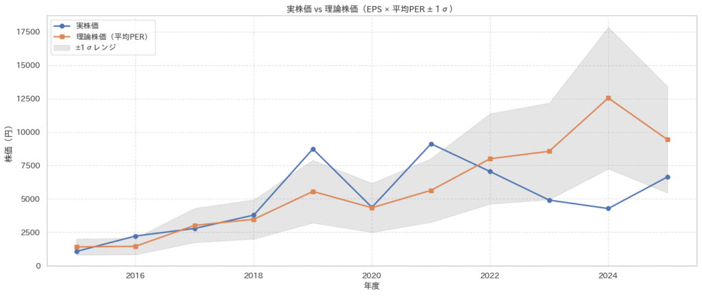 つまり、現在株価は明らかに適正ゾーンに位置しており、割高感はなく、かといって大きく割安でもない。