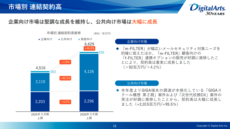 法人向けビジネスが安定成長する一方、個人向けは縮小傾向が続いています。