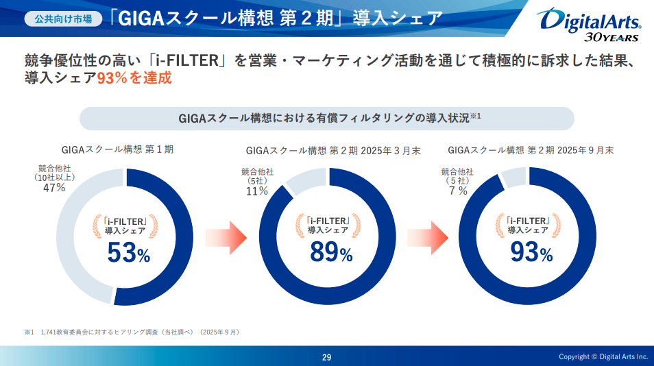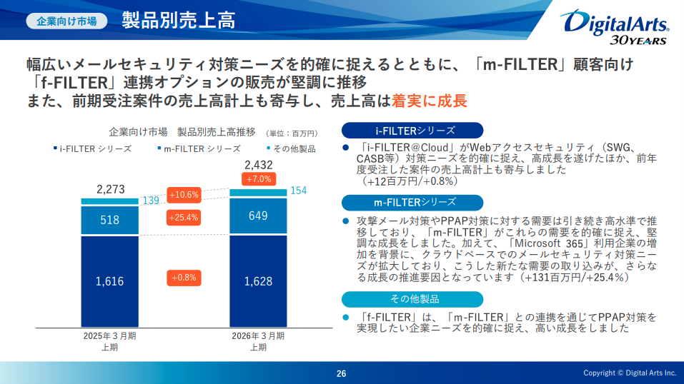 • 「Beyond Device Security」の売上が既に3割超 → 定期課金モデルへの進化段階で、売上比率40%声を目指す。
