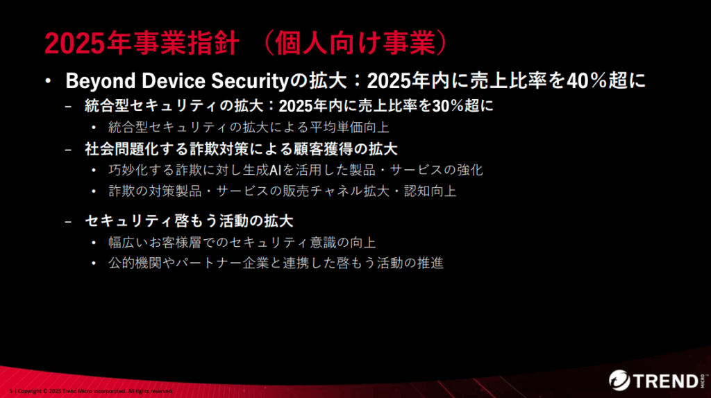 課題としては、Vision Oneのアタッチ率(導入済顧客比率)が29%と低調なことが挙げられます。今後は既存顧客へのクロスセルによるアタッチ率向上が重要課題でしょう。